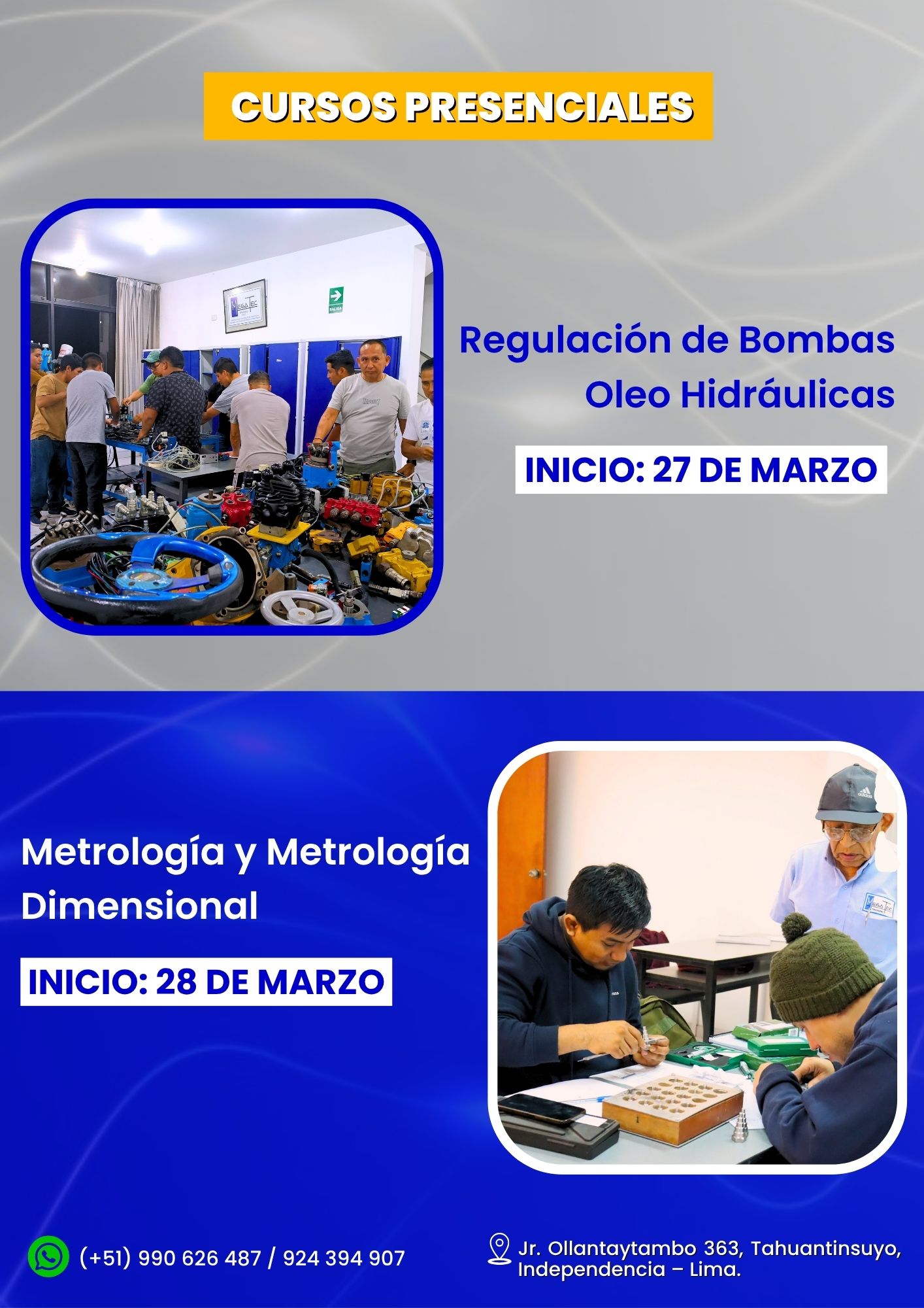 El curso PRESENCIAL: "REGULACIÓN DE BOMBAS OLEO HIDRÁULICAS" de 3 días, con 27 h de duración y clases teóricas - prácticas se desarrolla en nuestro local y se hace uso de componentes seccionados y sobre todo del único módulo equipado con bombas variables de uso didáctico en el país.